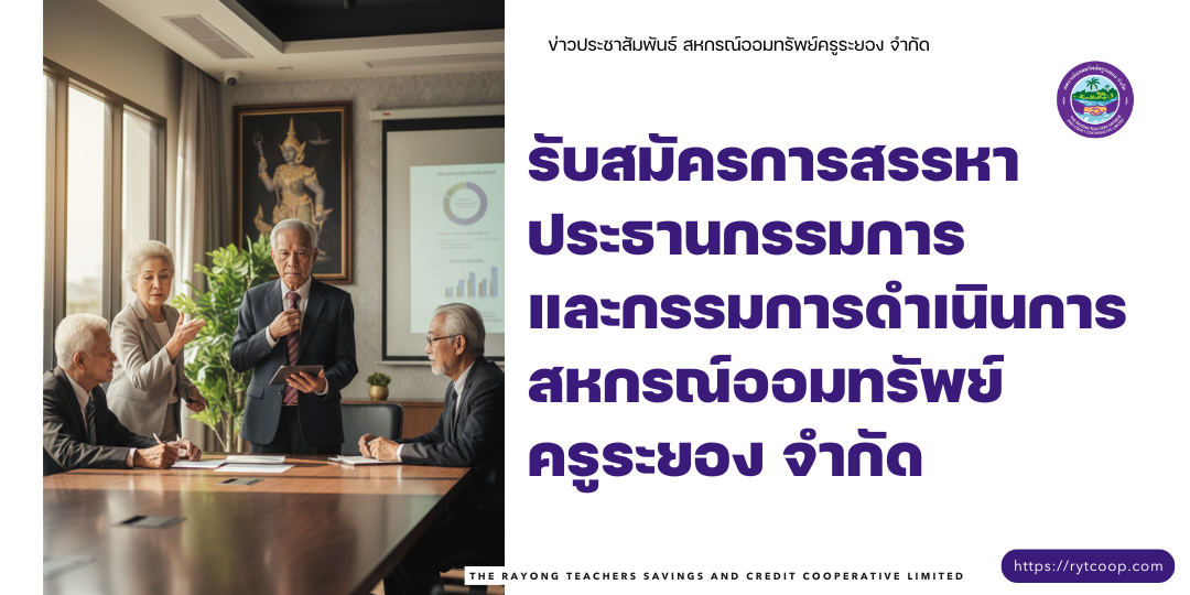 ประกาศ – รับสมัครการสรรหาประธานกรรมการและกรรมการดำเนินการสหกรณ์ออมทรัพย์ครูระยอง จำกัด