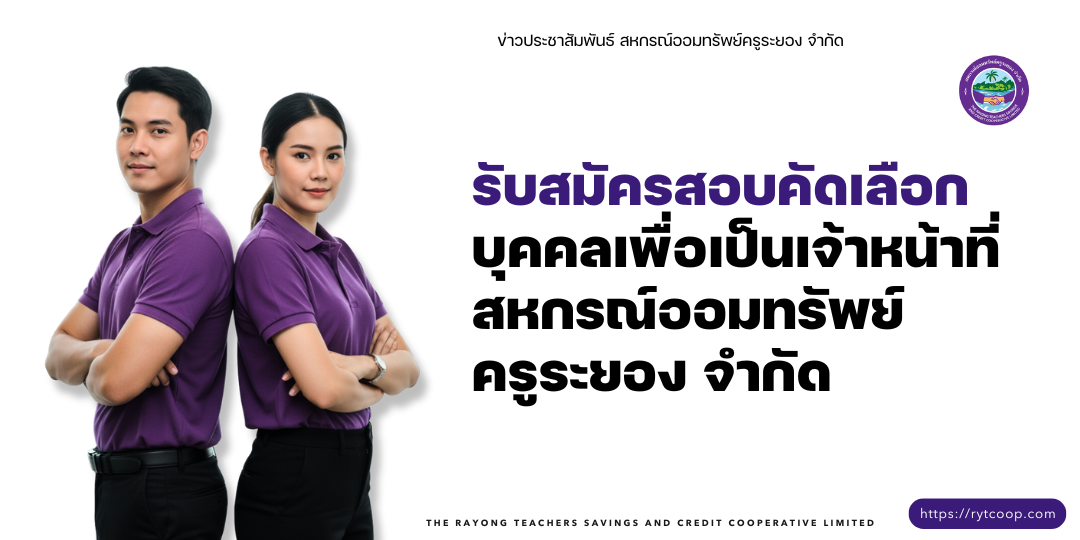 26 กันยายน 2568 ประกาศ – รับสมัครสอบคัดเลือกบุคคลเพื่อเป็นเจ้าหน้าที่สหกรณ์ออมทรัพย์ครูระยอง จำกัดข่าว สอ.ครูระยอง, ประชาสัมพันธ์