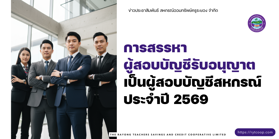 26 กันยายน 2568 ประกาศ – การสรรหาผู้สอบบัญชีรับอนุญาตเป็นผู้สอบบัญชีสหกรณ์ ประจำปี 2569ข่าว สอ.ครูระยอง, ประชาสัมพันธ์